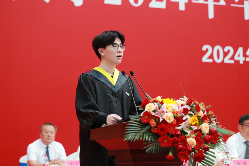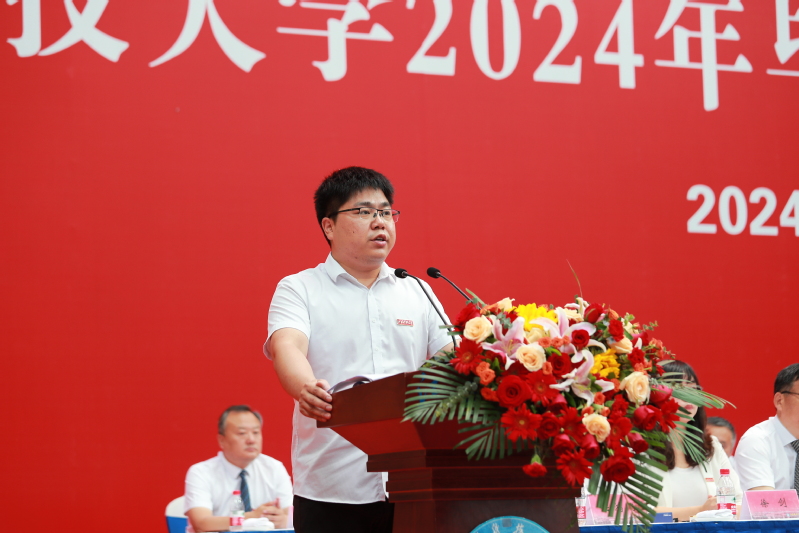 教职工代表、科学技术研究院副院长李阳祝贺各位同学顺利毕业,希望大家立大志、做大事,顾大局、讲格局,素心做人、用心做事,信心满怀书写青春之歌、报国之曲。