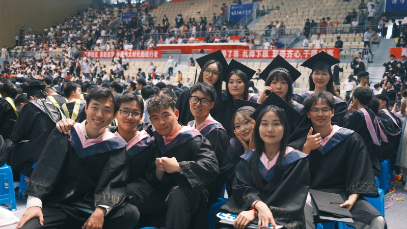 欢呼迭起,掌声雷动。导师们身着导师服上台站定,庄重的学位授予仪式正式开始。毕业生身穿学位服,依次上台领取学位证书,学位委员会全体导师为他们拨穗正冠、颁发学位证书并合影留念,学位授予仪式圆满完成。莹莹玉壶心,依依惜别情。台下,毕业生们与挚友相携、与父母相拥,合影留念,用相机定格美好的瞬间。