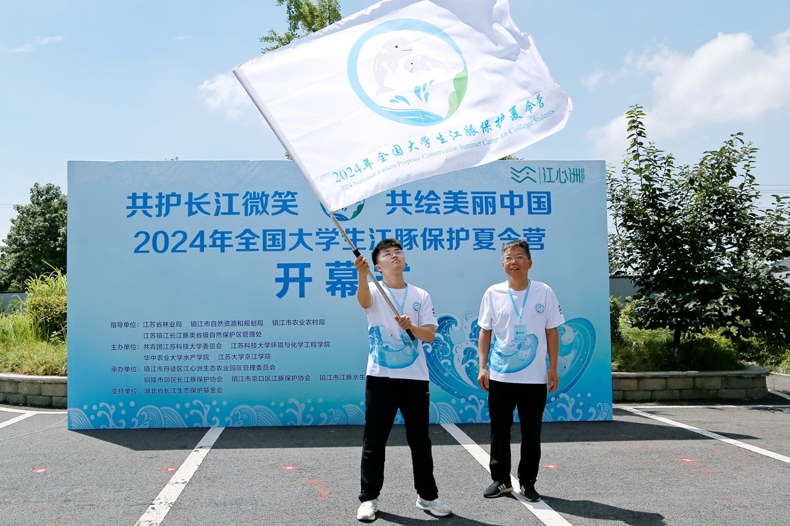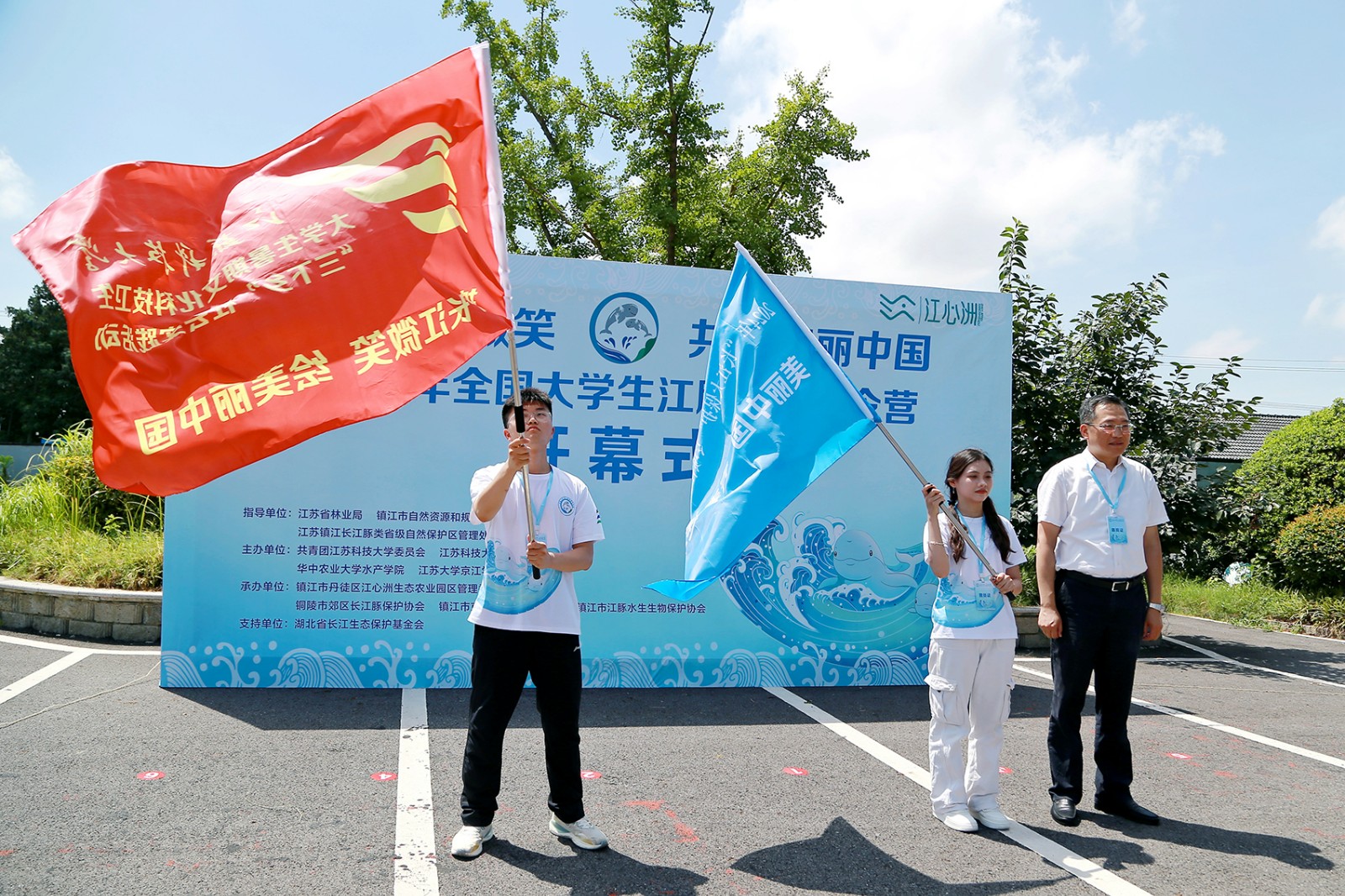 7月25日上午,2024年全国大学生江豚保护夏令营在镇江江心洲正式开营。来自全国各地的大学生江豚保护志愿者和夏令营指导单位、主承办单位的领导齐聚一堂,共同开启新的征程。我校党委常委、副校长潘锦全,校团委书记张海洋,环境与化学工程学院党委书记王新刚、副书记王召征出席了开幕式。