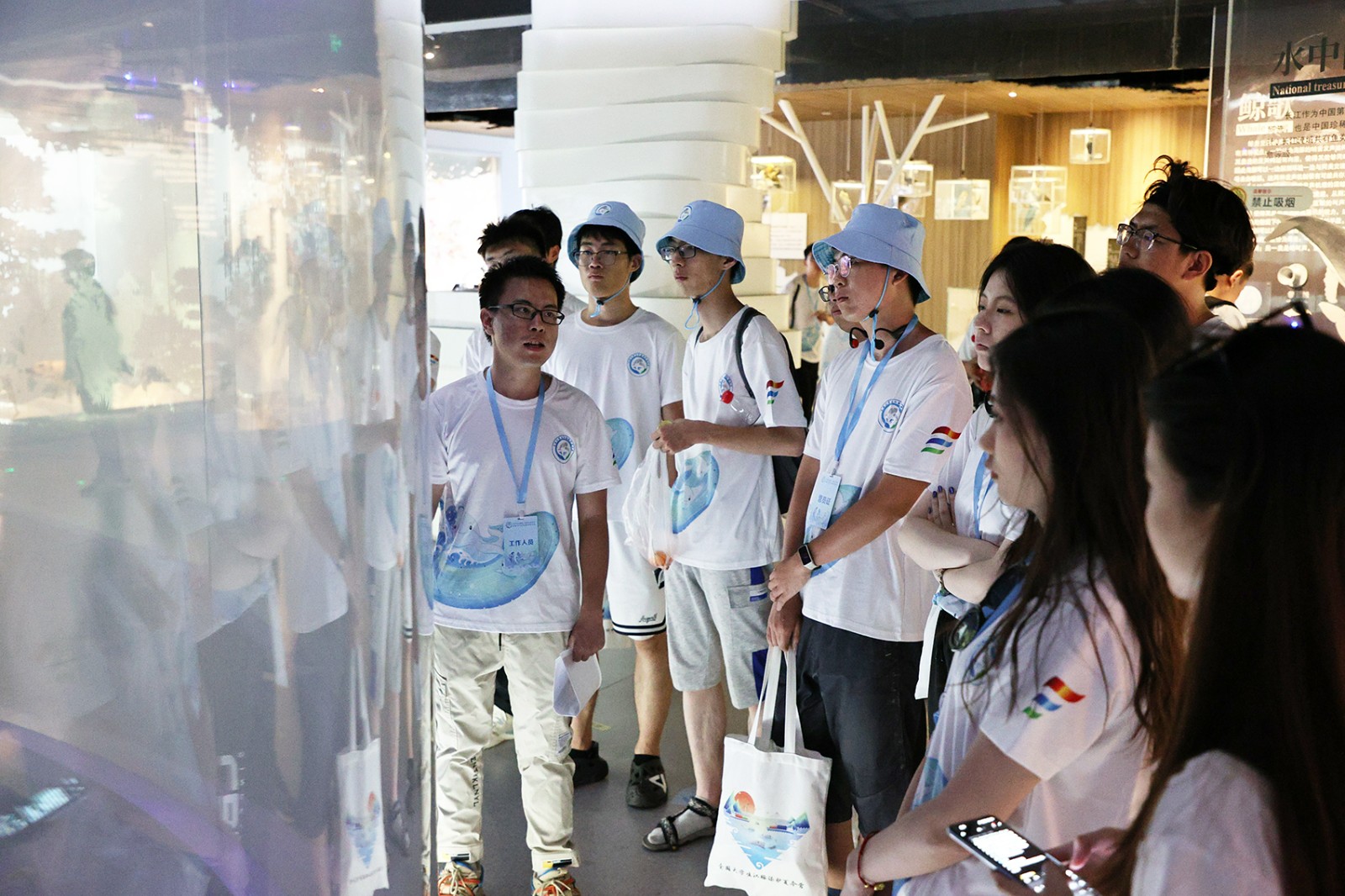 下午,营员们前往镇江科技馆参观长江珍稀水生动物主题展,深入了解长江江豚和白鱀豚的现状和历史。豚类保护区管理处副主任王召根作《长江江豚保护工作进展与展望》专题报告,详细介绍了近年来保护区内长江江豚的种群数量和分布情况、生物多样性现状及生态修复情况。