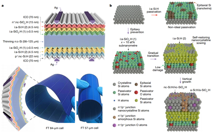 “我想尽自己的一份力,能够让学校在我们力所能及的范围内更上一个台阶!”在今年1月份,李阳领衔的团队在国际顶级期刊《Nature》上发表关于柔性硅太阳能电池的研究性论文,成为学校首篇《Nature》,打破校史!李阳自豪地介绍:“我们的研究成果弥补了晶硅电池的一个短板,在未来,晶硅太阳能电池可以像卷轴画一样卷起来,放在人们的背包或汽车后备箱里用于旅行。”这一成果不仅为学校赢得了荣誉,也为产业的发展作出了重要贡献。回想起当时攻克难关的情景,李阳笑着告诉我们:“做事情最重要的就是坚持,这份荣誉和成就属于我们的团队、属于我们共同坚持和付出的每一个日夜。”在近3年的时间里,从硅片到钝化再到电池,每一个阶段都充满了挑战。“很多研究光靠老师一个人是做不出来的。”为了在疫情期间加快研究进度,李阳曾在办公室的沙发床上住过3个月,虽然过程坎坷,但他和他的学生们却从未言苦言累。他们每天早上8:30来到实验室,直到晚上10:00后才回宿舍,对此,李阳非常肯定学生的付出,他的鼓励和支持让学生们更加自信、更加坚定地走在科研的道路上,也正是团队这种忘我的投入和付出,最终换来了科研成果的璀璨绽放。