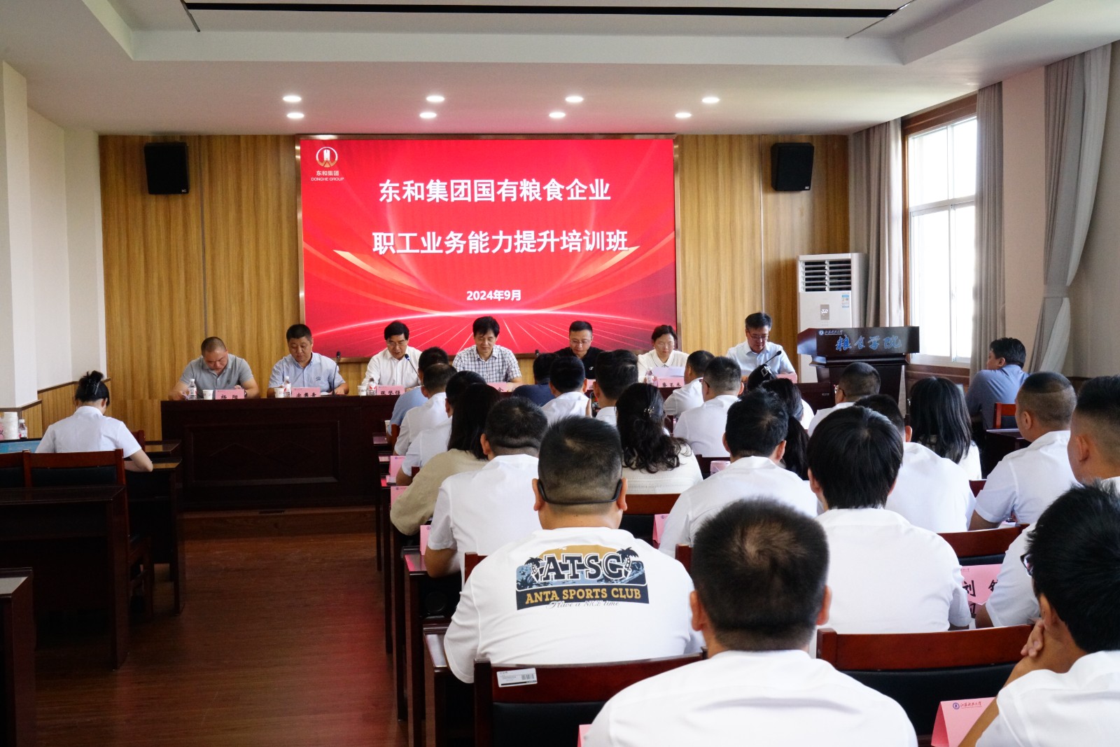 9月23日上午,东和集团所属全县国有粮食企业职工业务能力提升培训班在粮食学院510多功能厅举行开班仪式。如东县发改委副主任孙建全,东和集团党委副书记、总经理徐敏,副总经理、东和粮食公司董事长宗隽青,中国船舶工业工程师继续教育学院院长张坚强、粮食学院党总支书记梁忠臣、院长鲁玉杰、副院长张晓伟以及来自东和集团所属全县国有粮食企业的相关负责人和34名学员参加了开班式。开班仪式由梁忠臣主持。
