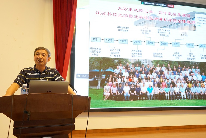 10月16日,计算机学院邀请了原校长助理、对外合作处处长、校友会秘书长生佳根教授,在梦溪校区演讲厅围绕校史校情、优秀校友、爱校荣校和理想信念四个重要方面开展了以“扬起青春的风帆”为主题的2024级新生转型教育课第一讲。本次讲座由计算机学院党委副书记吴健康主持,2024级计算级类专业学生在现场聆听,软件工程和人工智能专业学生在教室内通过网络直播聆听讲座,全体新生辅导员共同参与。