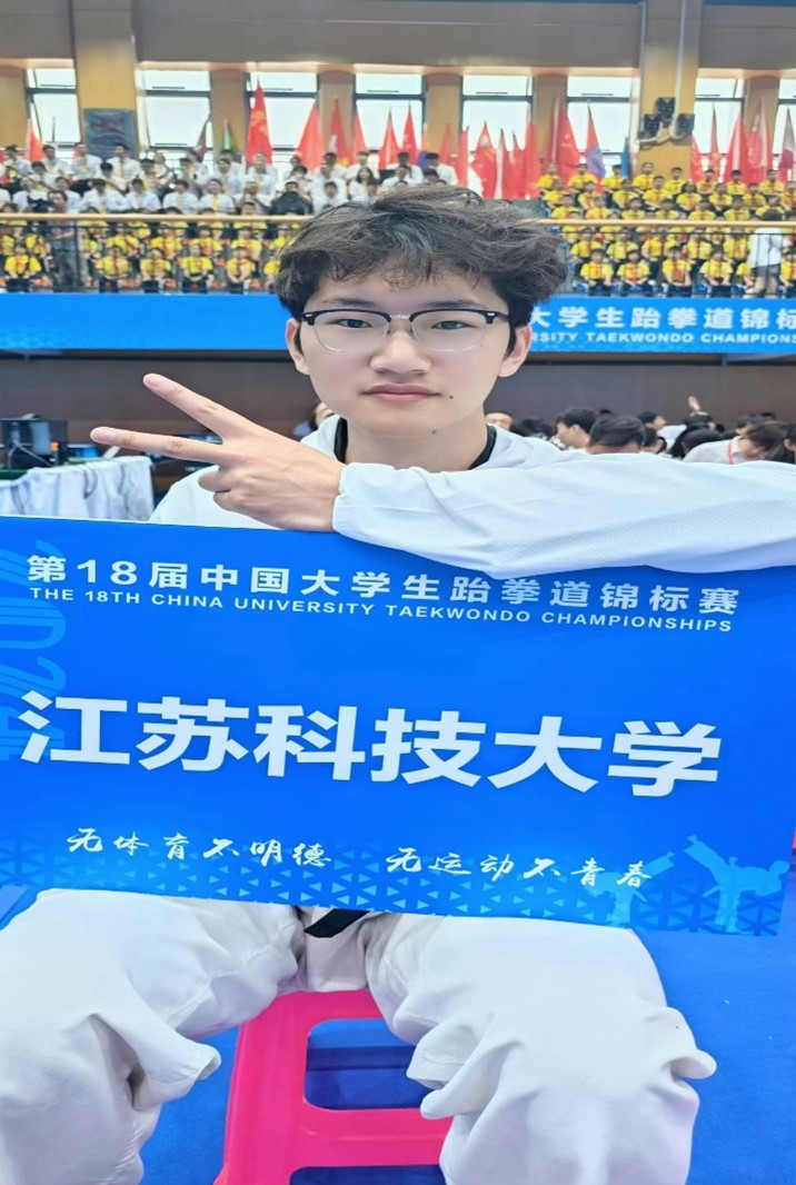 在灿烂热烈的7月,我迎来了人生中的重要时刻——荣登第18届中国大学生跆拳道锦标赛(总决赛)冠军宝座,这不仅是我个人的荣耀,更是学校历史上首枚全国大学生体育类比赛金牌。每当路过熟悉的训练场地,那些挥汗如雨的训练瞬间和比赛中惊心动魄的画面,如同电影般在脑海中一一回放。