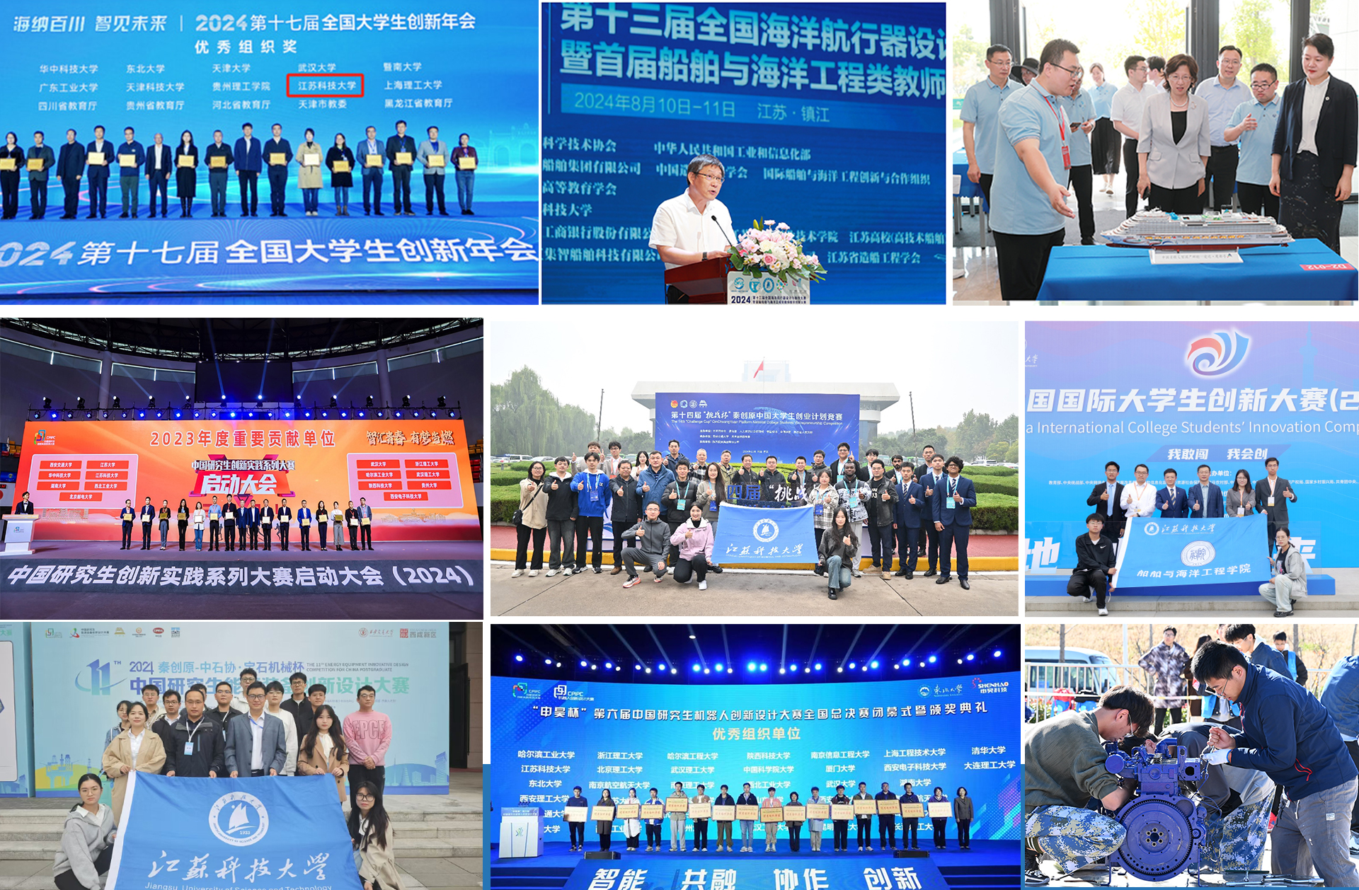 以学科竞赛为抓手,以赛促学,以赛促教,赛教结合。学校位列全国普通高校大学生竞赛榜单(本科)第67位,首次进入全国前100位,江苏省前10位,获评中国研究生创新实践系列大赛年度重要贡献单位,赛事贡献力位列全国第4位。在2024年“高教社杯”全国大学生数学建模竞赛获得国家一等奖2项、二等奖10项,国奖总数位列全国第三、全省并列第一。获第十七届全国大学生创新年会“优秀组织奖”,全国仅5所地方高校获奖,是江苏省本届年会唯一获此殊荣的高校。获中国国际大学生创新大赛金奖4项、银奖6项目、铜奖1项,获金奖总数位列全国第15位、全省第4位。获第14届“挑战杯”秦创原中国大学生创业计划竞赛金奖2项、银奖3项、铜奖4项,其中1个项目受邀参加闭幕式现场签约仪式(全国仅5项受邀)。2024年,在第二十一届中国研究生数学建模竞赛中1个团队首次斩获“数模之星”全国亚军的单项好成绩;在中国研究生“美丽中国”创新设计大赛、企业管理创新大赛等赛事中首次获得全国一等奖;中国研究生创新实践系列赛事中电子设计竞赛、能源装备创新设计大赛等9项赛事获评全国“优秀组织奖”。举办第十三届全国海洋航行器设计与制作大赛暨首届船舶与海洋工程类教师教学创新大赛,与国内兄弟院校、科研机构共同拓展学科的建设和发展空间。