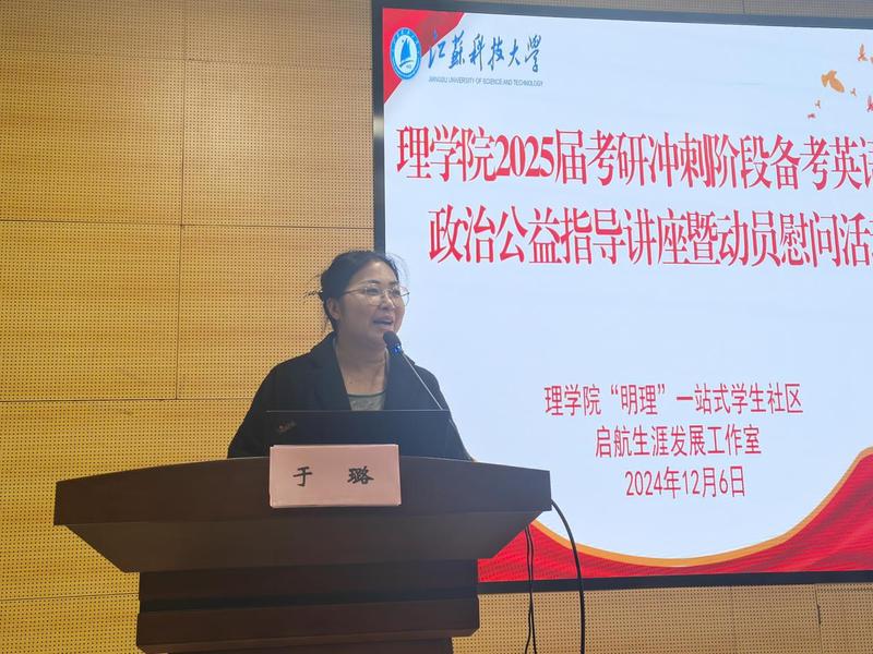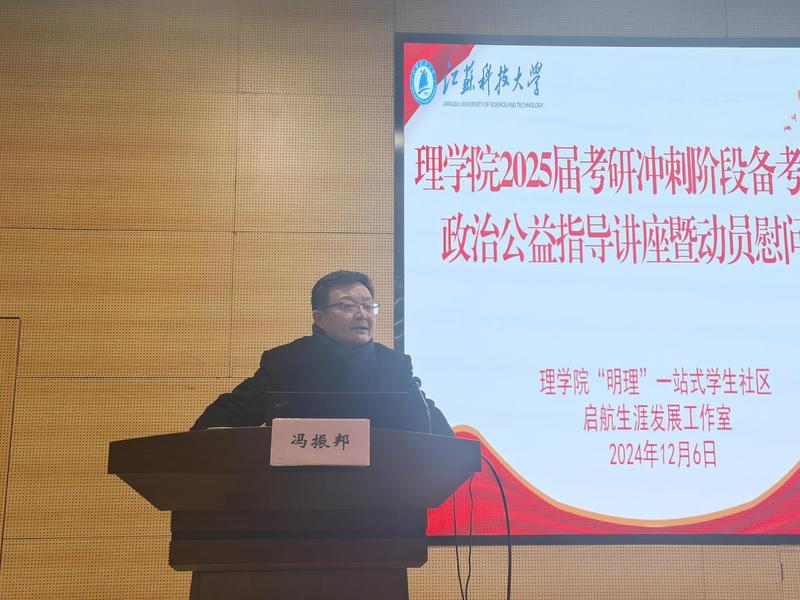12月6日下午,理学院在图书馆B105报告厅举办2025届考研冲刺阶段备考英语、政治公益指导讲座暨动员慰问活动,为考研学子们送上最暖心的鼓励和最真挚的祝福。理学院院长戴俊,2025届毕业班班主任和辅导员以及2025届考研学子参加了本次活动。活动由院党委副书记周志辉主持。