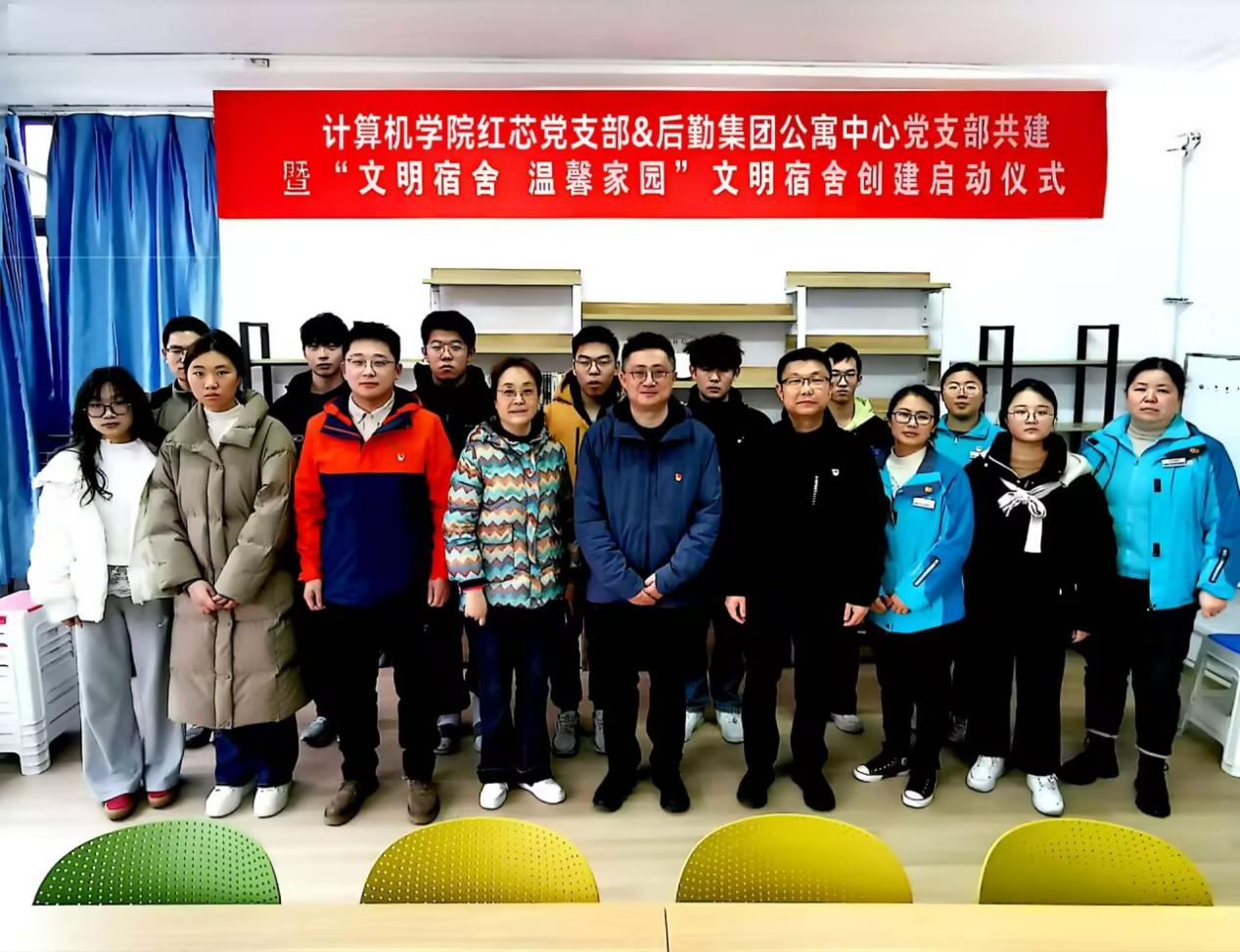 3月14日,计算机学院红芯党支部与后勤集团公寓中心党支部在梦溪校区C8 109室共同举办了“文明宿舍温馨家园”文明宿舍创建启动仪式。本次活动旨在通过党建引领,推进一站式学生社区建设,促进校园文明和谐发展。出席仪式的有计算机学院党委副书记吴健康、公寓中心党支部书记杭坚、梦溪校区公寓中心主任姜华、红芯党支部党员代表、后勤公寓中心工作人员以及计算机学院的学生代表们。活动由红芯党支部书记陆鑫主持。