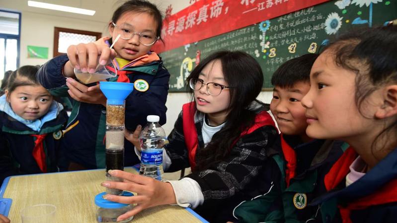 为迎接世界水日,宣传节水精神,机械工程学院星火服务社携梦溪义工站于3月20日上午走进镇江市朱方路小学的课堂,开展"滤水寻源探真谛,绘护水情润心田"主题志愿活动。