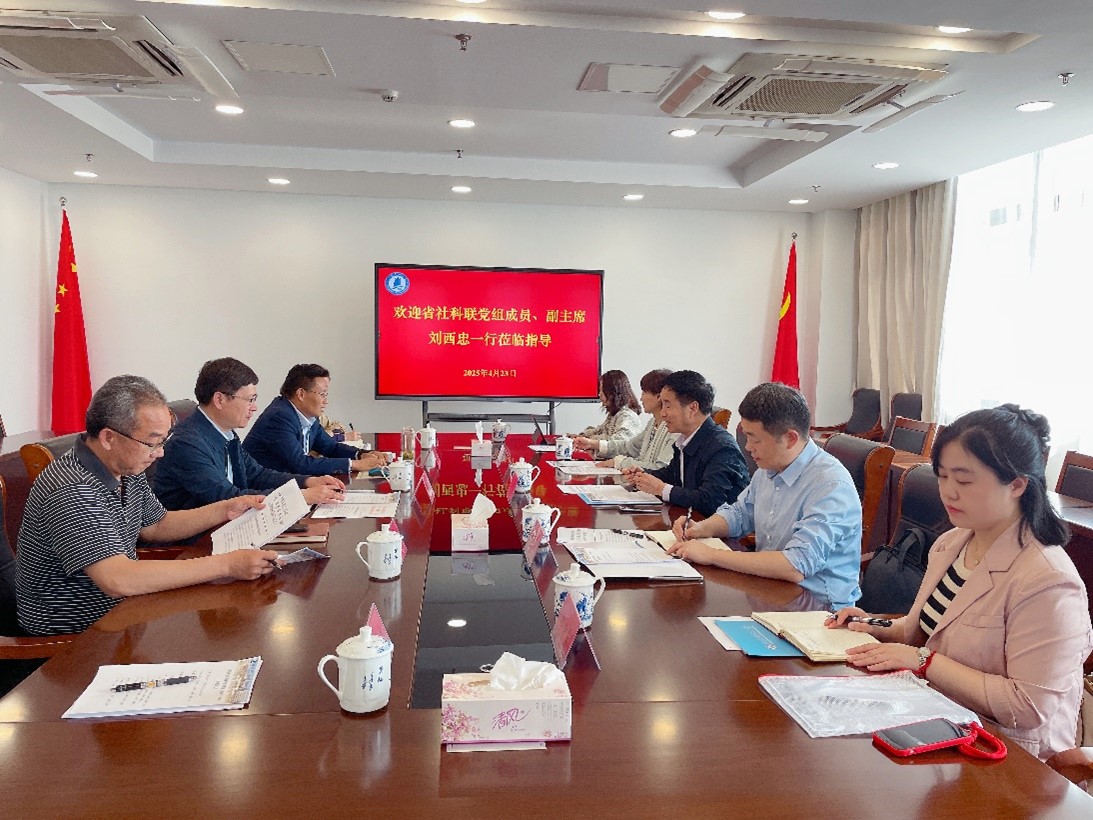 潘锦全对刘西忠副主席一行的调研指导表示热烈欢迎,并从历史沿革、学科建设、办学特色、人才培养等方面介绍了我校的办学情况。他表示,加快高校社科联建设以及推动智库建设高质量发展对繁荣我校哲学社会科学、支撑高水平大学建设具有重要作用。学校将结合实际积极推进相关工作,在省社科联的关心指导下,进一步强化与省社科联相关部门的交流合作,主动谋划省级决策咨询研究基地的申报组织。同时,将发挥我校行业特色与学科研究优势,坚持问题导向与系统观念,进一步促进学科交叉融合,在高层次哲学社会科学研究平台和高水平研究成果等方面力求取得新突破。