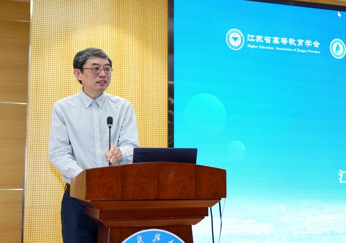 杨建新致欢迎辞,向参会人员介绍了学校的基本情况和办学特色。他指出,人工智能不仅是技术创新的产物,更是推动教育进步、促进人才培养的强大动力。本次会议以人工智能赋能高等教育为研讨主题,具有鲜明的时代性和重要的现实价值,相信研讨成果将推动江苏省高等教育事业工作再上新台阶。