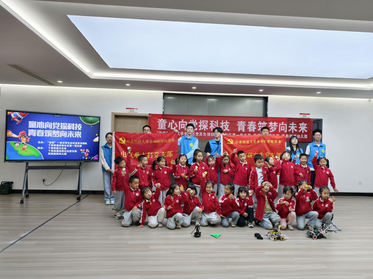 4月29日,自动化学院"自信"一站式学生社区党员先锋队联合中共镇江经开区丁卯街道武将社区第二党支部,以"童心向党探科技,青春筑梦塑未来"为主题,共同开展五四青年节党建共建活动。本次活动通过支部结对、理论共学、科技启蒙"三步走"模式,构建起校社协同育人新平台,为基层党建注入青春动能。