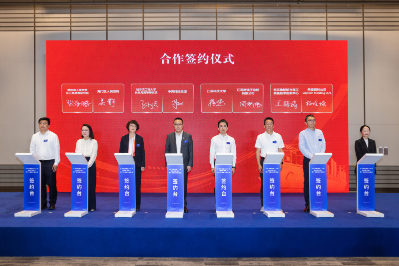 江苏省船舶海工产业创新联盟由我校与哈尔滨工程大学(长三角高等研究院)、中国船舶集团第七〇二研究所、中国船舶集团第八研究院、江苏省船舶工业行业协会共同发起成立。通过大会选举,我校与哈尔滨工程大学(长三角高等研究院)、中国船舶集团第七〇二研究所、中国船舶集团第八研究院共同当选为江苏省船舶海工产业创新联盟理事长单位,哈尔滨工程大学校长宋迎东当选为首届执行理事长,安博体育手机版校长嵇春艳等人当选为理事长。嵇春艳与徐春荣、朱爱勋、张彤、宋迎东等领导共同为江苏省船舶海工产业创新联盟揭牌。我校与江苏新扬子造船有限公司在活动中进行合作签约。