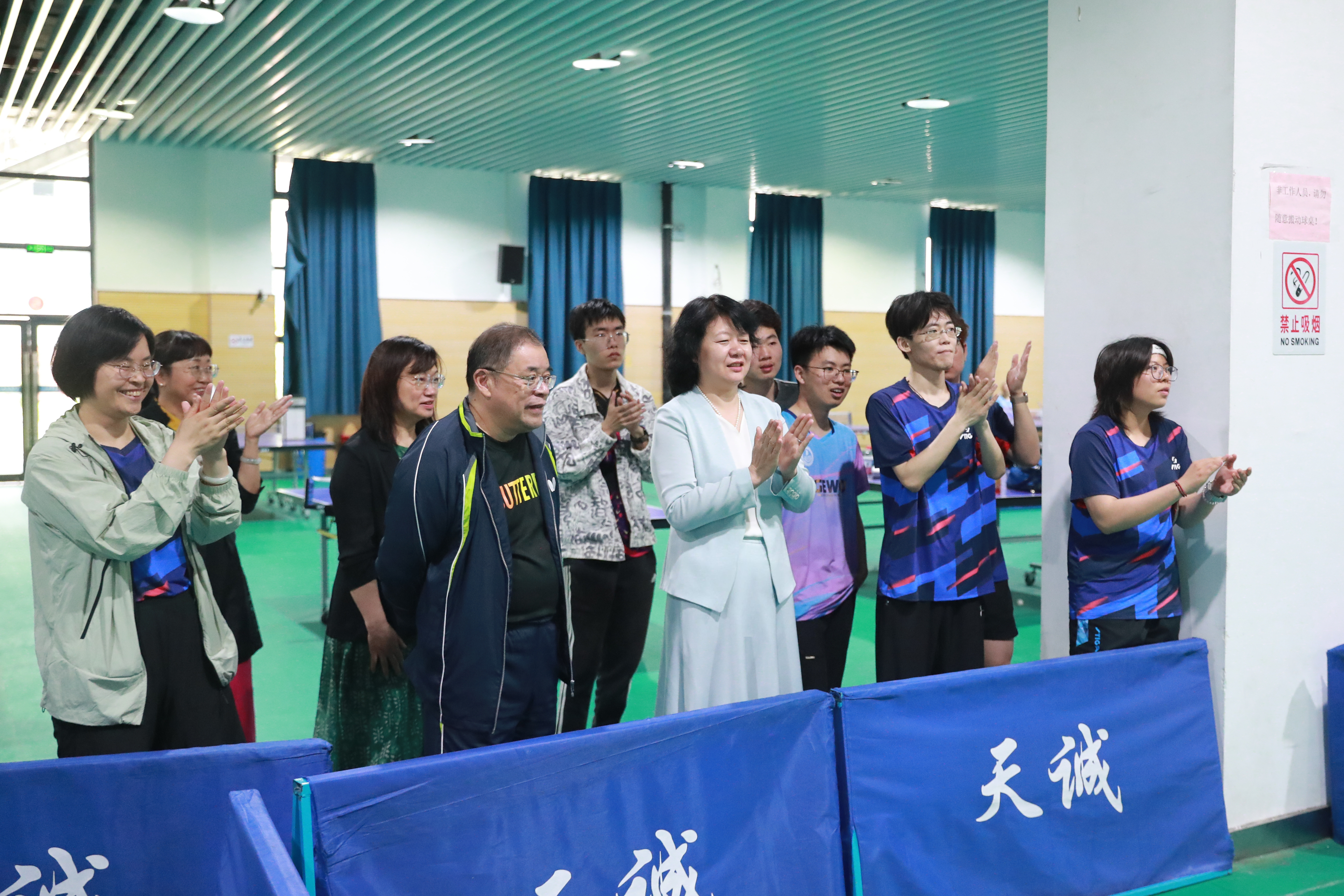 胡爱祥致开幕词,他表示,近年来,我校群众性体育赛事、体育教学和全民健身运动蓬勃发展。乒乓球作为“国球”运动,在我校有着深厚的群众基础。希望各参赛队伍以球会友、增进交流,为构建和谐、活跃、灵动的校园体育文化氛围贡献力量!