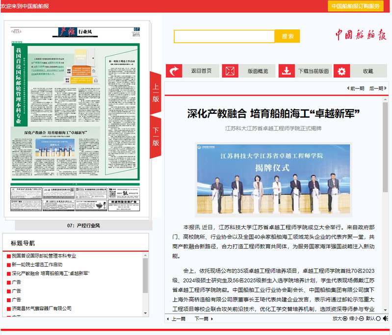 江苏科大校长嵇春艳表示,卓越工程师学院将紧扣产业链需求,破解人才培养与产业需求难题。未来,该学院将实施“项目制培养”“双导师护航”“学科交叉中心”等创新举措,深化与中船集团等龙头企业的合作,聚焦总建造师、总工艺师等高层次人才培育,推动科技创新与产业升级同频共振,为海洋强国建设锻造“能扛重担、敢闯深蓝”的卓越工程师队伍。