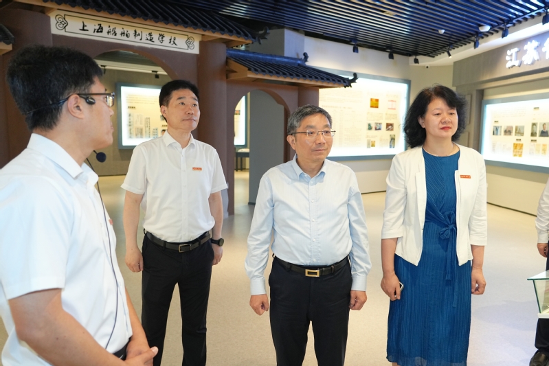 江涌一行先后参观了船舶文化馆、船舶制造仿真实验室、茅以升精神党建阵地、景荣春学生党支部、校史馆及科研成果展示厅。在调研过程中,江涌详细了解了学校的办学特色、标志性科研成果、党建品牌等方面的工作,并与师生代表现场交流。
