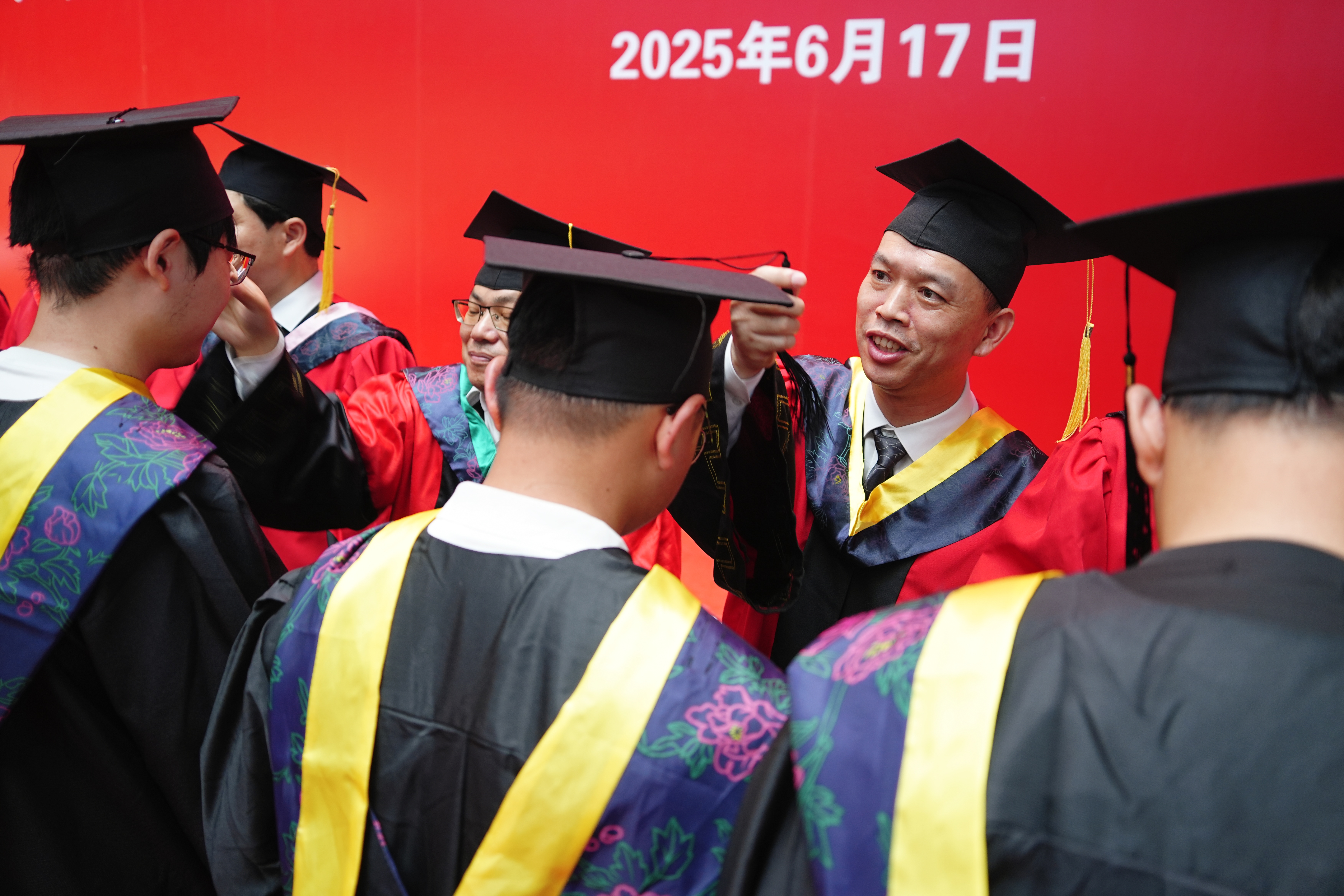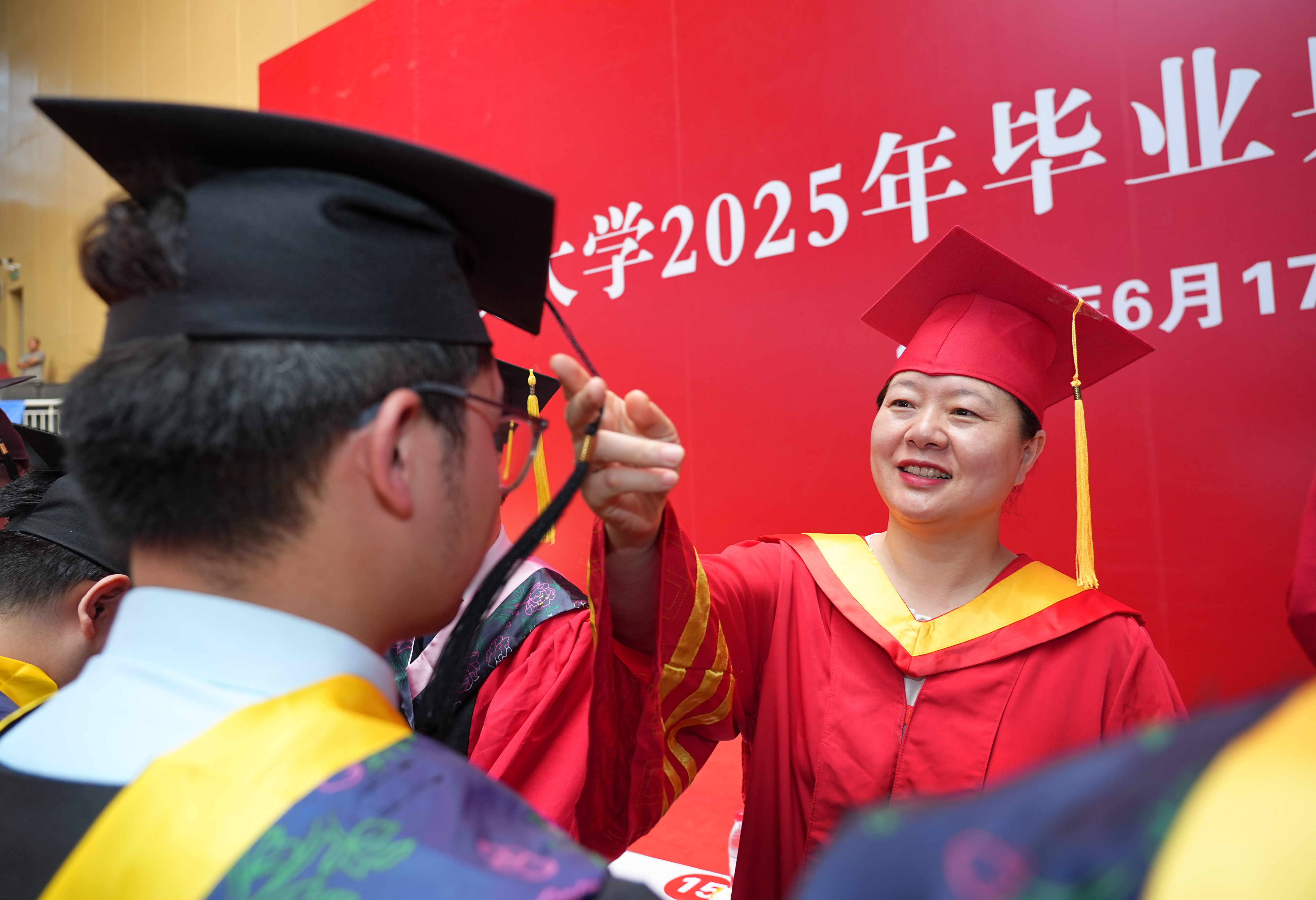毕业生依次上台领取学位证书,学位委员会全体导师为他们一一拨穗,圆满完成学位授予仪式。