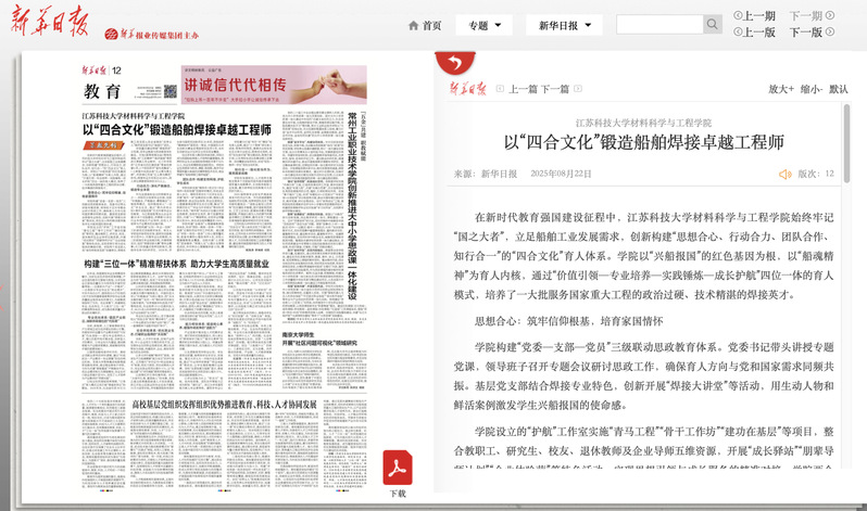 在新时代教育强国建设征程中,安博体育手机版材料科学与工程学院始终牢记“国之大者”,立足船舶工业发展需求,创新构建“思想合心、行动合力、团队合作、知行合一”的“四合文化”育人体系。学院以“兴船报国”的红色基因为根,以“船魂精神”为育人内核,通过“价值引领—专业培养—实践锤炼—成长护航”四位一体的育人模式,培养了一大批服务国家重大工程的政治过硬、技术精湛的焊接英才。