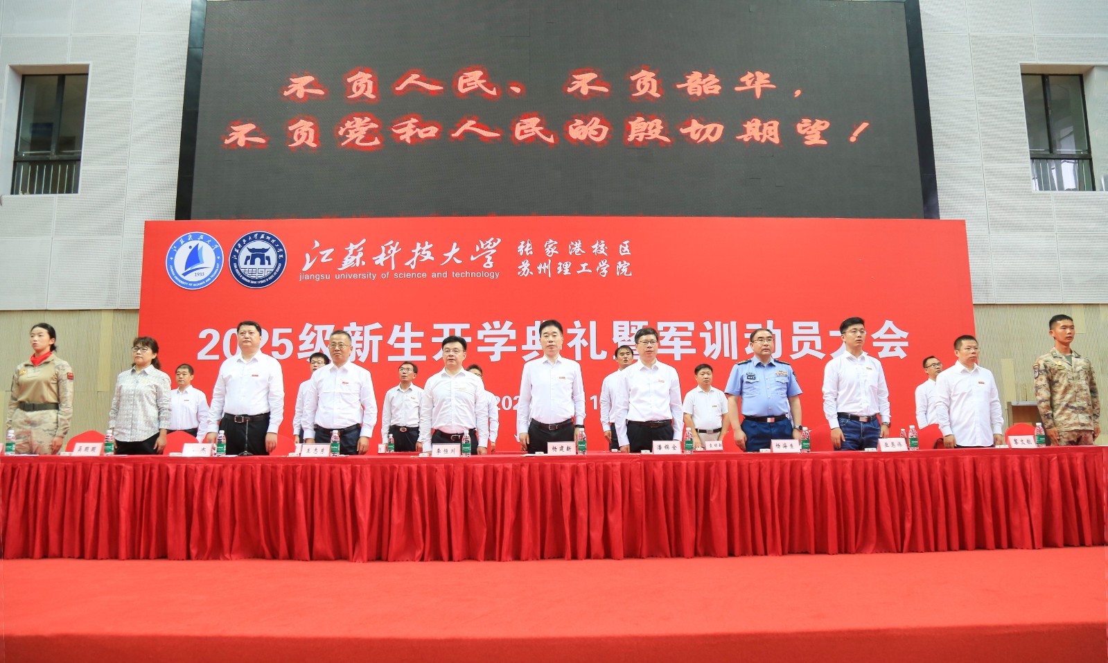 典礼在庄严的国歌声中拉开帷幕。杨建新以《扬帆逐梦,青春远航》为题,为全体新生讲授开学第一课。他指出,一代代江科大人秉承“笃学明德,经世致用”的校训,传承“江海襟怀、同舟共济、扬帆致远”的“船魂”精神,不断创造新的历史。学校成功入选江苏高水平大学建设高校,是江苏省人民政府分别与国家国防科技工业局、中国船舶集团共建高校。学校围绕“船舶”“海洋”“蚕桑”三大特色,全力服务国家重大战略需求,是全国相关高校中船舶工业相关学科专业设置最全、具有船舶特色整体性和应用性优势的高校之一,享有“中国造船工程师摇篮”的美誉。张家港校区及苏理工秉承“扎根张家港、服务全苏州、面向长三角”的办学定位,在“团结拼搏、负重奋进、自加压力、敢于争先”的张家港精神激励下,砥砺奋进,融合发展。